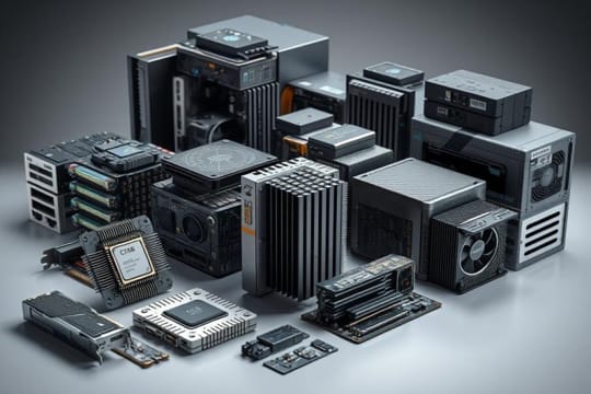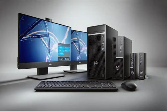 A stationary PC with separate components like a tower, monitor, keyboard, and mouse, designed for use at a desk.
