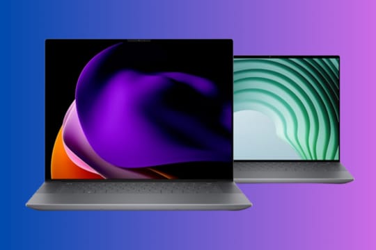 A portable personal computer with a built-in screen, keyboard, touchpad, and battery, designed for use on the go.